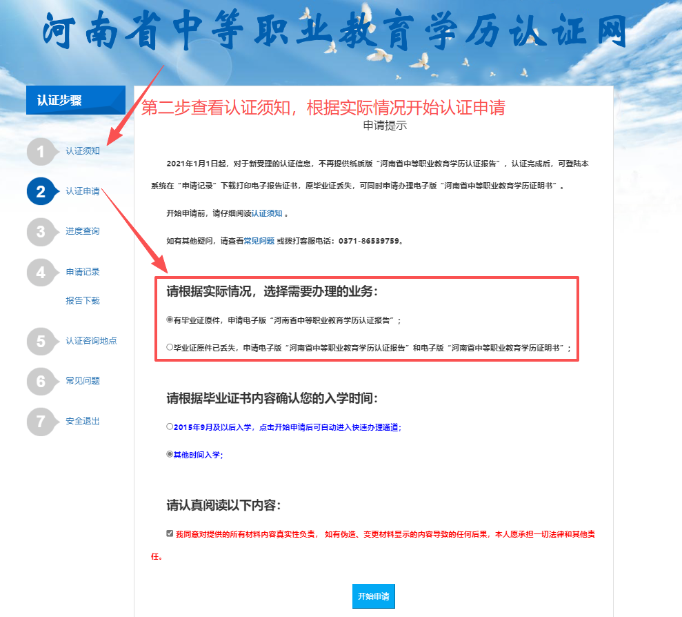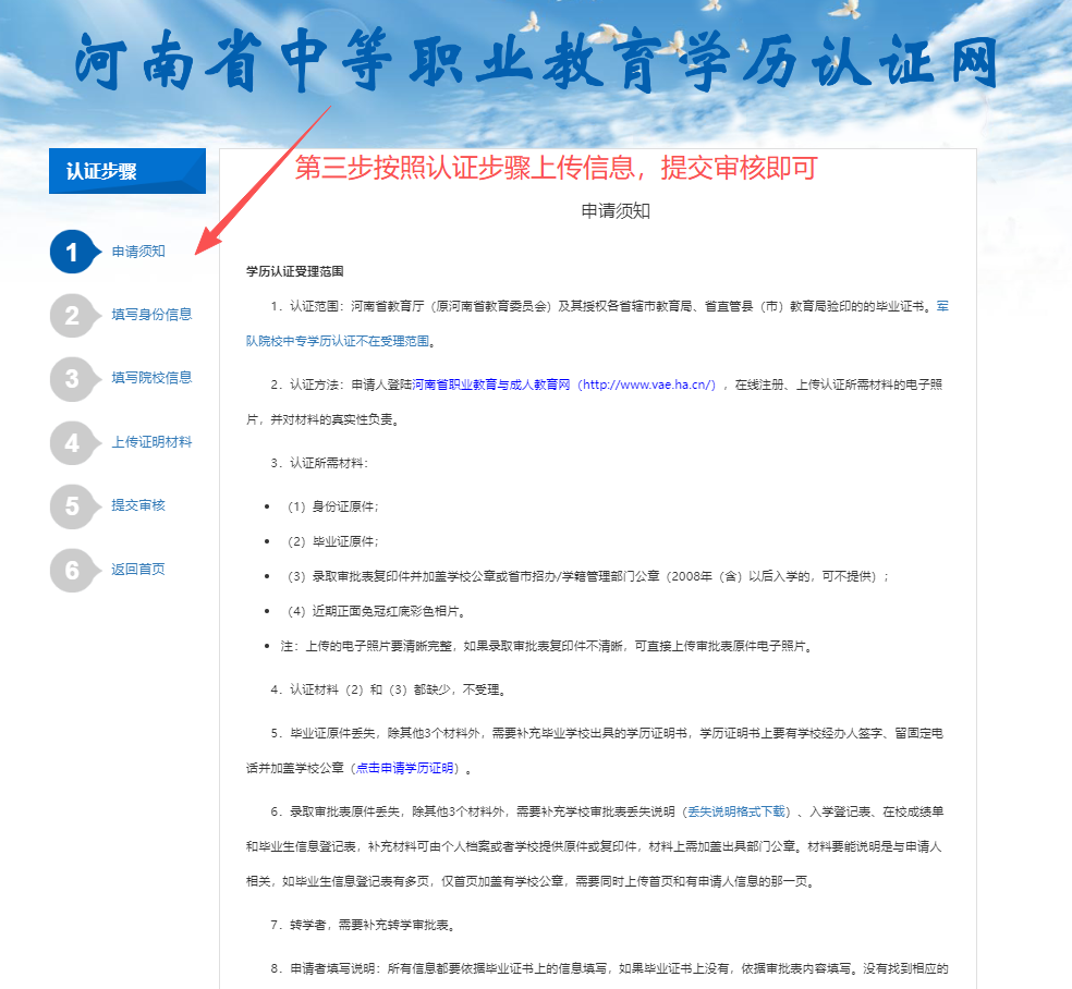 一、学历认证 我校普通中专毕业生学历认证,请自行到“河南省中等职业教育学历认证网”进行网上学历认证。网址:https://xlrz.vae.ha.cn/河南省中等职业教育学历认证咨询电话:0371-86539759二、注意事项 按照最新文件通知,若学生“录取审批表”与“申请人身份证”两者出现“同年不同月”的情况(例如:录取审批表出生年月为1988年10月,身份证上出生年月为1988年11月),学校无需出具证明,申请人可直接在认证网站上传材料进行认证。